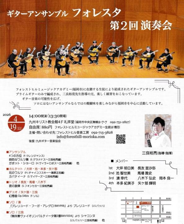 今年4月にプロデビューした有馬信一氏、佐賀で活躍される寺田健一郎プロも加わっているギターアンサンブルグループのライブです。